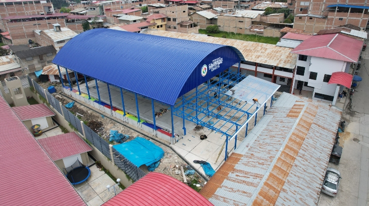 Moderna losa deportiva con cobertura metálica de la UGEL Chota en su etapa final