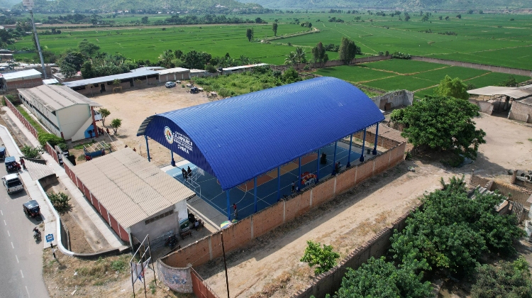 Se encuentra en su etapa final la construcción de la moderna losa deportiva con cobertura metálica en las instalaciones de la UGEL Chota.
